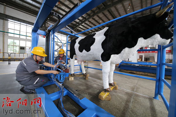 日前,在位于洛陽高新區(qū)的洛陽拓博爾鐵路設備有限公司,企業(yè)研發(fā)的自動擠奶機器人首臺樣機下線。